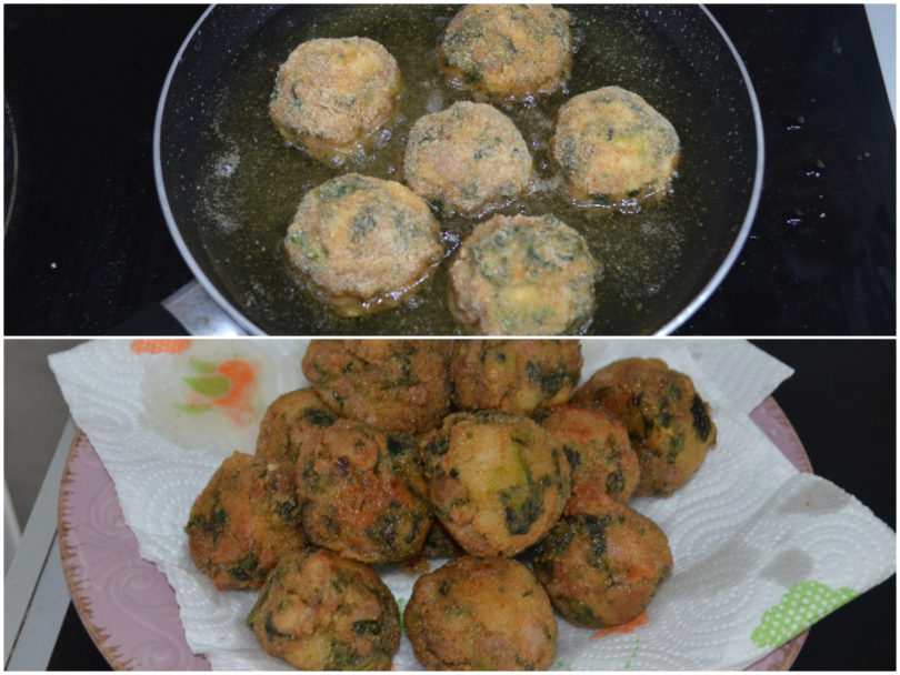 Fate scaldare l'olio di semi in una padella friggete le polpette, facendole dorare uniformemente da tutti i lati e scolandole poi su carta da cucina.