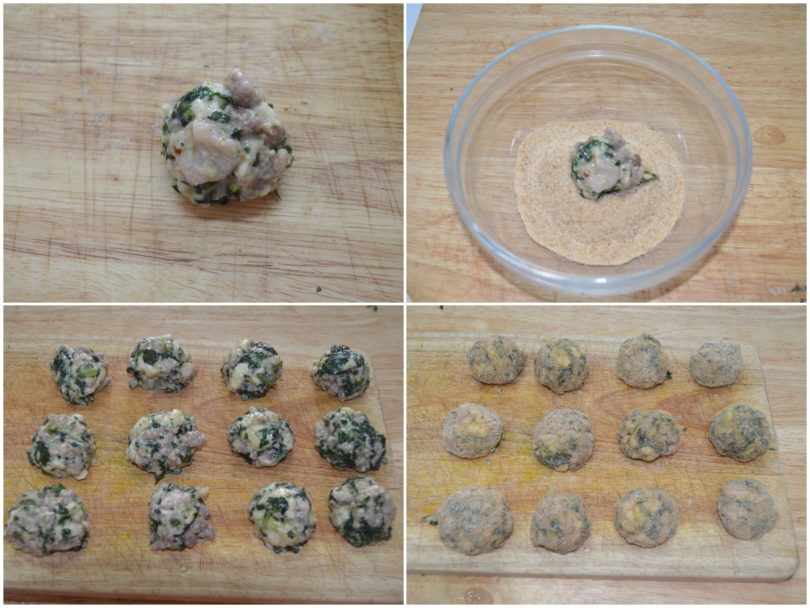Con le mani umide, formate le polpette e passatele nel pangrattato.