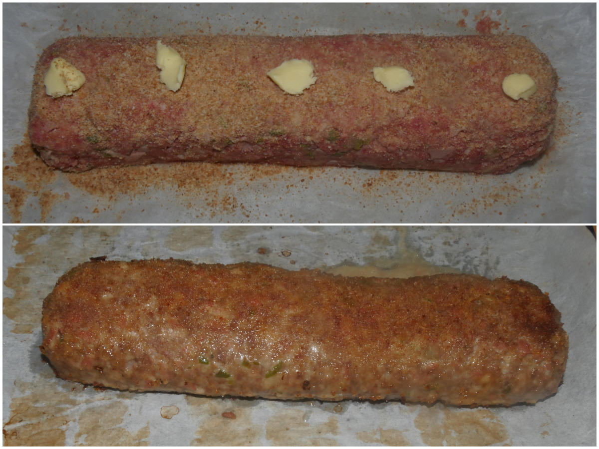 Trasferite sulla teglia del forno (con tutta la carta forno), cospargete con pangrattato e con qualche fiocchetto di burro e cuocete per circa 30-35 minuti a 180°C in forno ventilato già caldo.