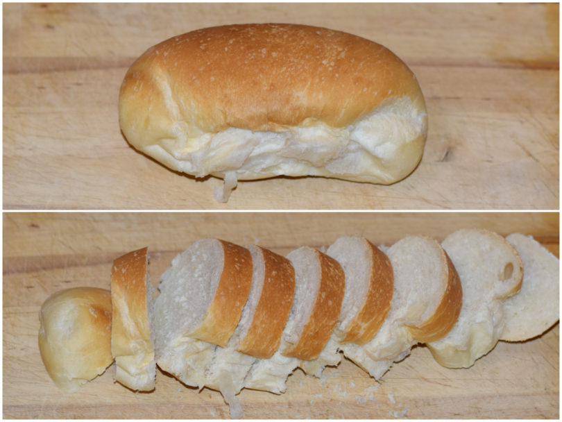 Mondate e tritate lo scalogno; tagliate il pane a fette o in pezzi.