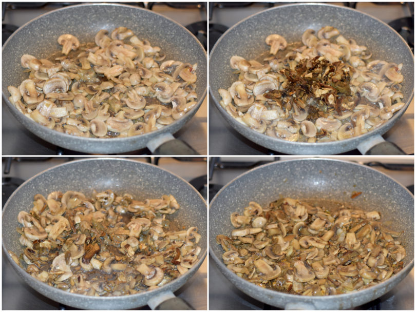 Aggiungete i funghi secchi e continuate la cottura per 10-15 minuti, in modo che si asciughino per bene.