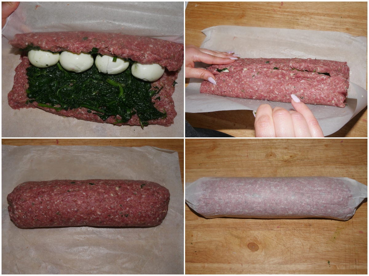 Aiutandovi con la carta forno, avvolgete il polpettone intorno alle uova, sigillando poi i bordi, quindi avvolgetelo con la carta forno e lasciate riposare in frigo per almeno 1 ora.