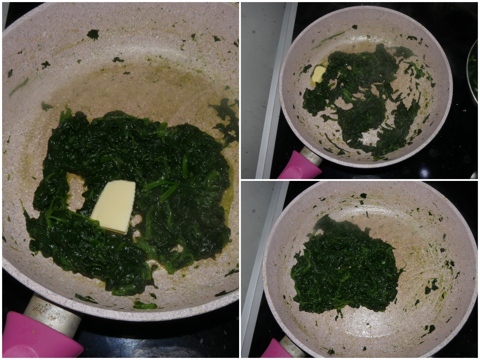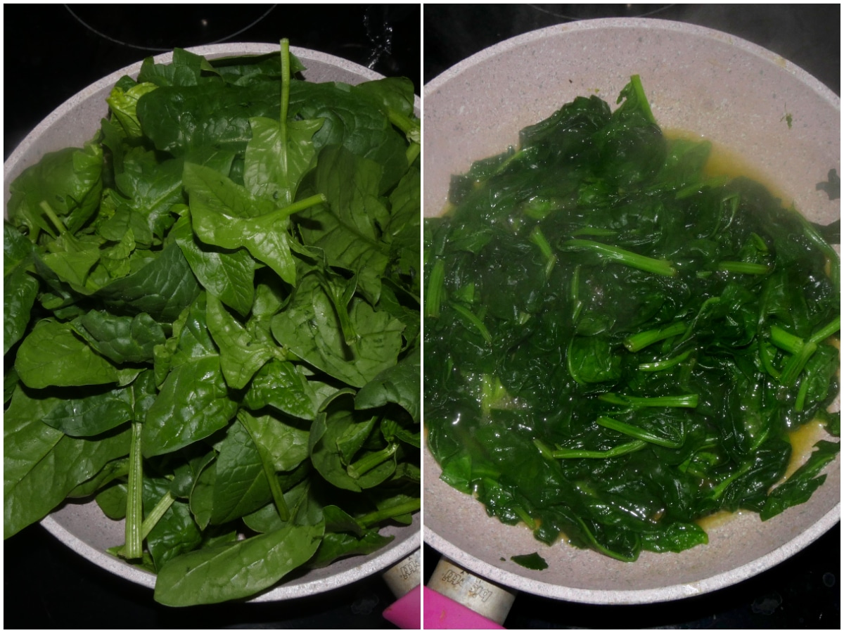 Nel frattempo cuocete gli spinaci, ben lavati, a vapore per un paio di minuti, giusto il tempo di farli appassire.