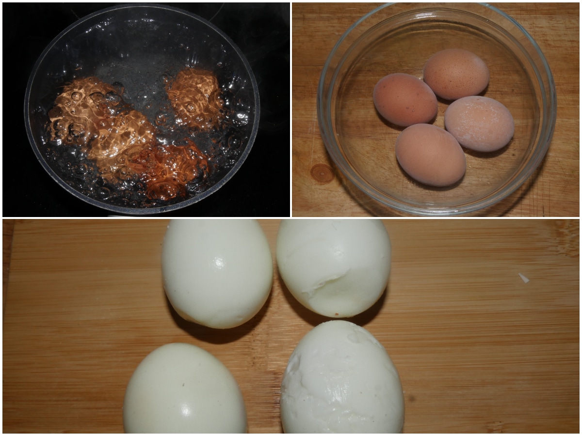 Innanzitutto cuocete le uova sode: mettetele in un pentolino con acqua fredda e cuocete a fiamma viva, per 8 minuti dall'ebollizione, quindi scolatele, passatele sotto acqua fredda corrente e sgusciatele.