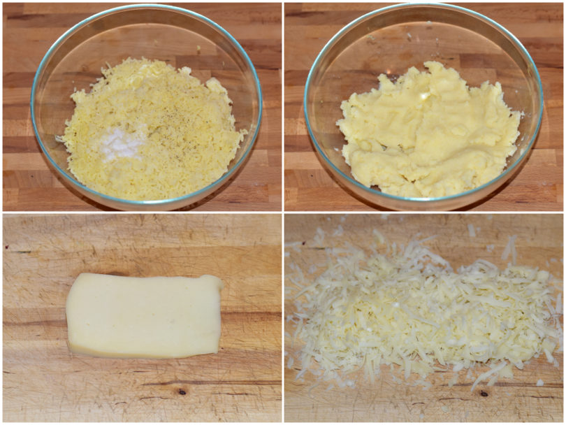 A parte, grattugiate il formaggio con la grattugia a fori larghi.