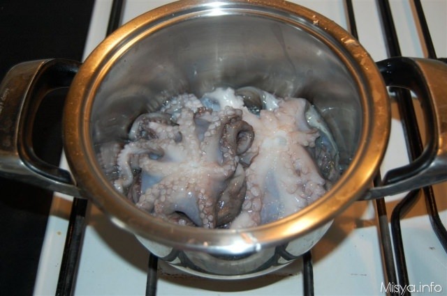 Lavate bene i polpi sotto l'acqua corrente, privateli del becco, degli occhi e della sacca.