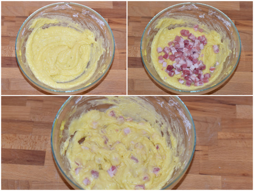 Infine unite anche la pancetta e mescolate, quindi trasferite il composto nella sac-à-poche.