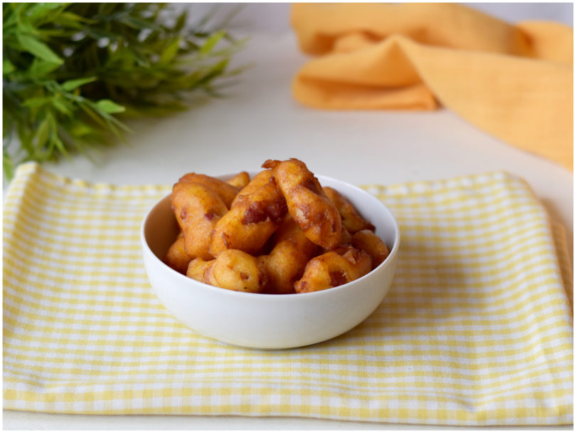 I pop corn di patate sono delle piccole delizie salate, perfette come finger food per aperitivi o buffet. Se vi erano piaciute le mie patatine puff, queste le adorete, vi assicuro! Si tratta di mini crocchette fritte, preparate con un impasto morbido a base di patate lesse, insaporite con pancetta e un pizzico di pepe. Il risultato? Bocconcini dorati, croccanti fuori e teneri dentro, di quelli che uno tira l'altro. La cosa interessante (oltre al fatto che sono buonissimi) è la tecnica di preparazione, che ricorda quella degli gnocchi: si inserisce il composto in una sac-à-poche e si tagliano i pezzetti direttamente nell'olio (invece che nell'acqua, come per gli gnocchi) bollente usando delle forbici. Un procedimento semplice ma divertente, che garantisce una forma leggermente irregolare per un risultato rustico e sfizioso.