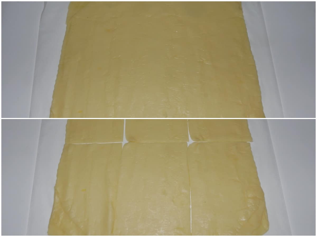 Riprendete il panetto e stendetelo in una sfoglia piuttosto sottile (non più di 3-4 mm), cercando di sagomarla in forma rettangolare: ritagliate dei rettangoli abbastanza grandi (8-10x4-5 cm: i Pop Tarts americani sono piuttosto grandi, ma voi se preferite potete farli più piccoli), ricordate che dovranno essere in numero pari perché andranno accoppiati a due a due.
