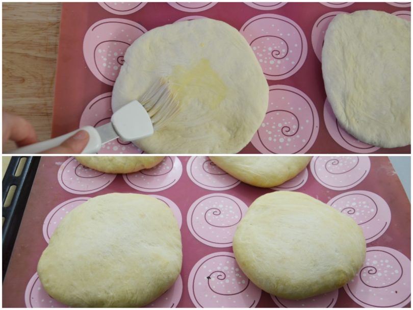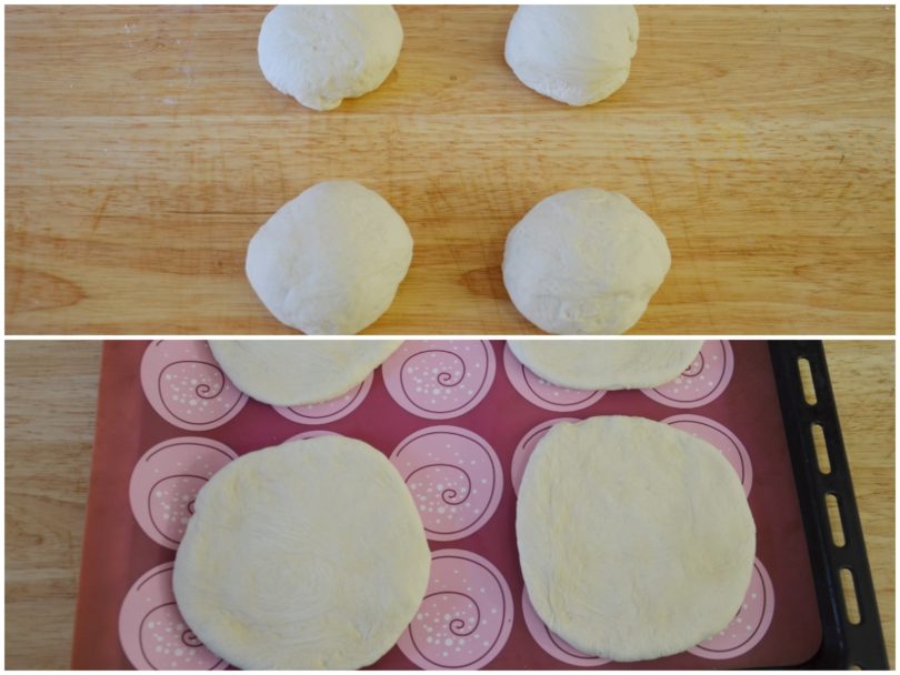 Infine riprendete le palline e schiacciatele bene con le mani stendendole in una forma tonda di 20 -25 cm di diametro. Più saranno schiacciate, meno mollica ci sarà.