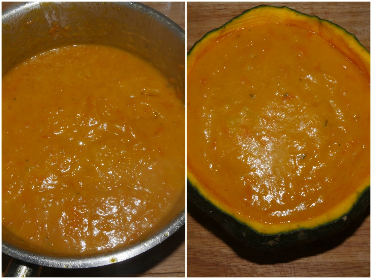 Versate la purea nel guscio di buccia (o in un piatto fondo da portata).