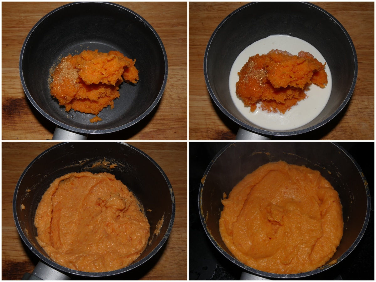 Mettete le patate in un pentolino antiaderente con burro, sale, pepe, zucchero di canna e panna, mescolate tutto, portate a ebollizione e cuocete fino ad ottenere una cnsistenza piacevolmente cremosa.