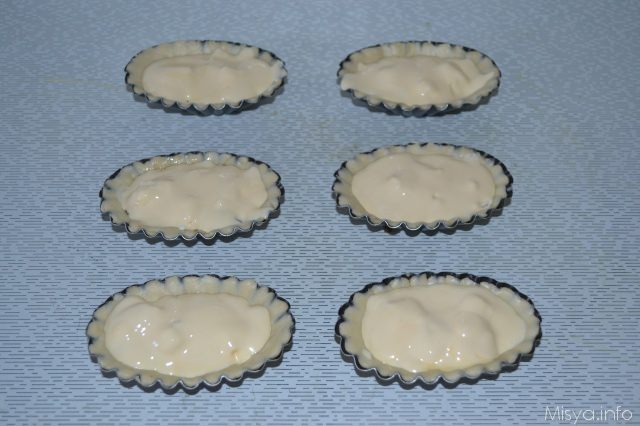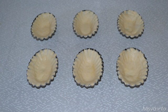 Imburrate le formine per le quiche, foderate le con la pasta sfoglia e bucherellate con i rebbi di una forchetta.