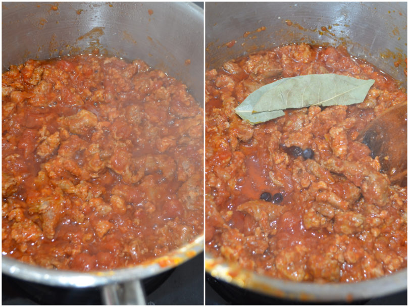 Eliminate l'alloro dal ragù, aggiungete la pasta e mantecate con un po' di parmigiano.