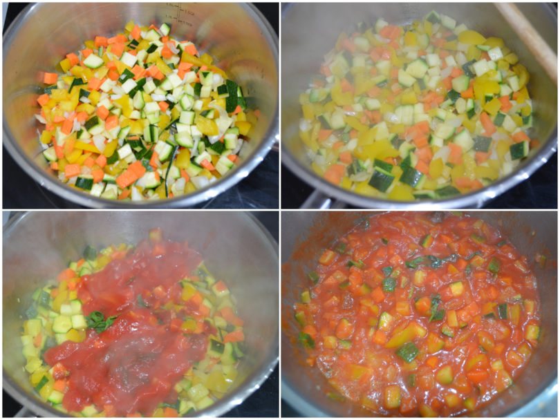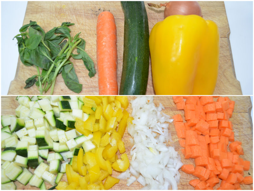 Io ho scelto di utilizzare carote, zucchine, peperoni, pomodori e tanto basilico.
