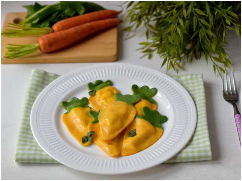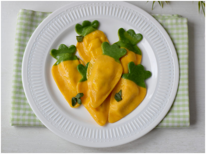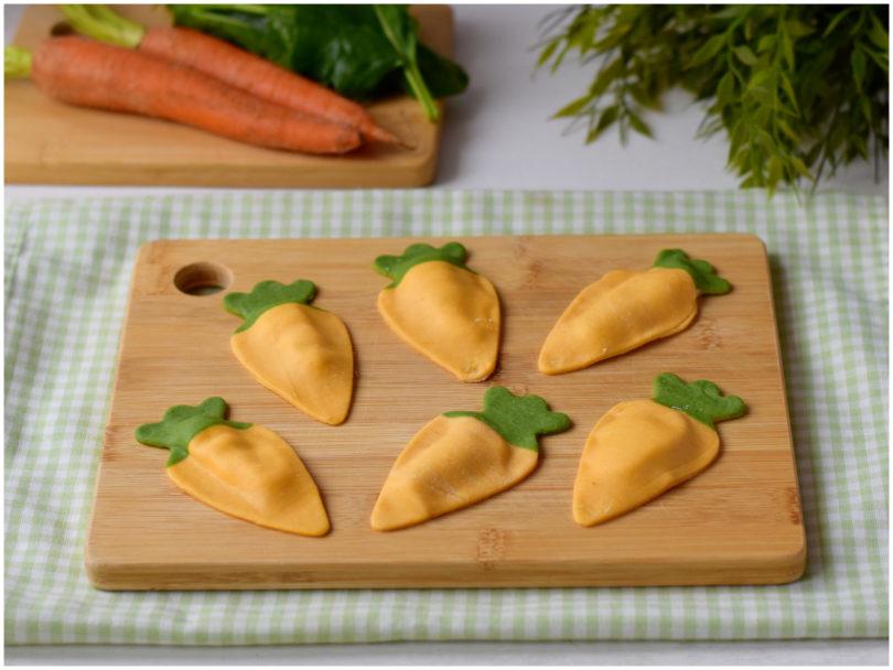 I ravioli a forma di carota sono pronti, non vi resta che servirli.
