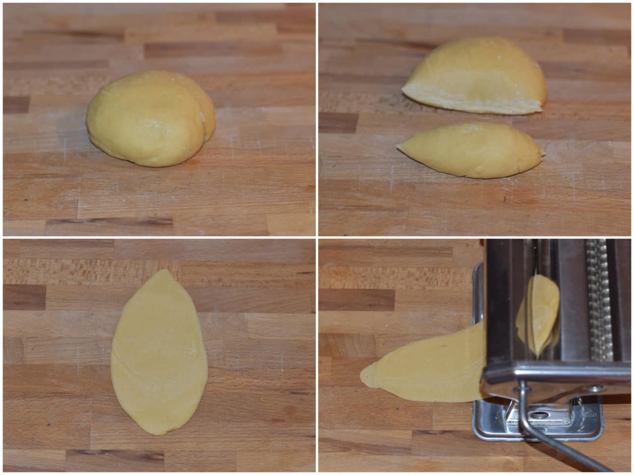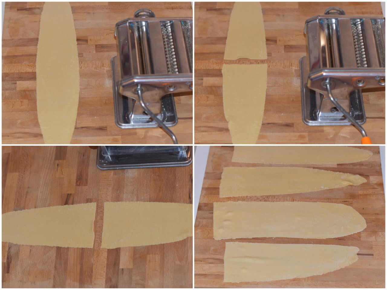 Riprendete la pasta, dividetela in più pezzi, prendetene uno per volta, appiattitelo prima con le mani e poi passatelo nella macchinetta tirasfoglia, partendo dallo spessore più ampio e arrivando man mano fino a uno di quelli più sottili (dipende da quanto volete spessa la sfoglia).