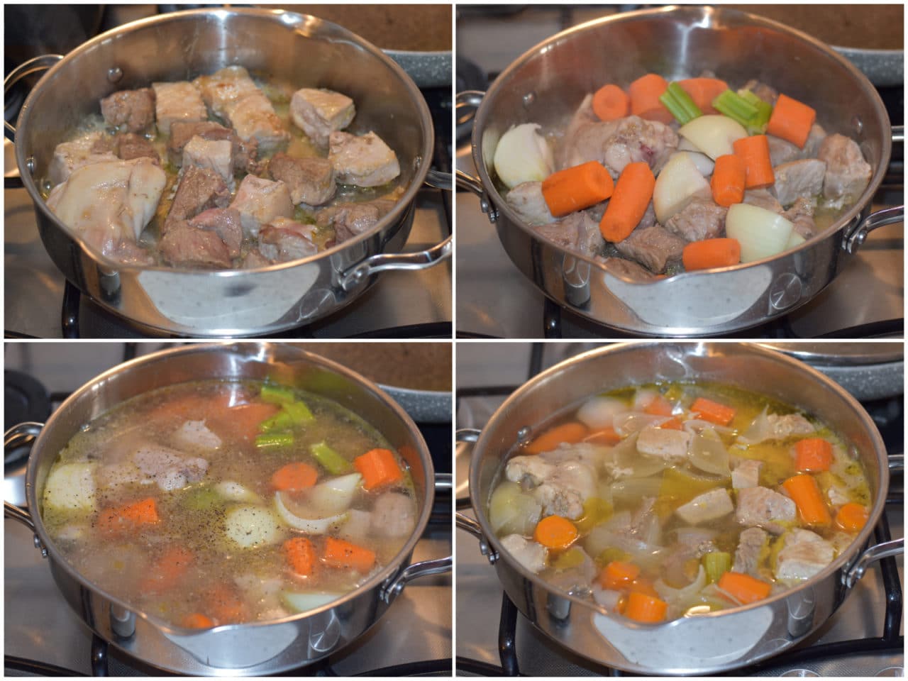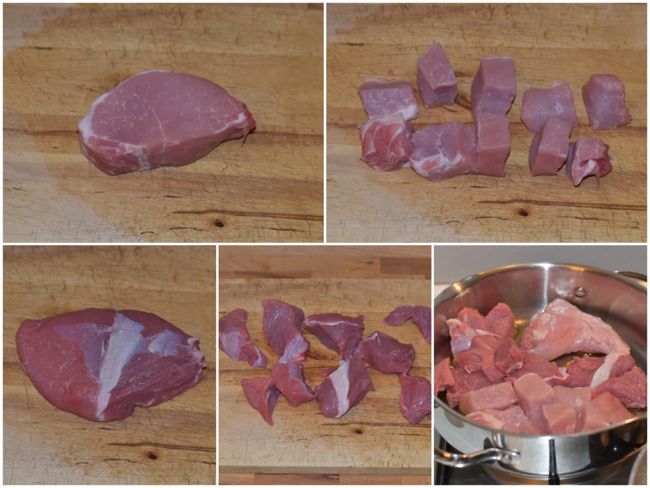 Innanzitutto mettete nella pentola la carne a pezzi, con un po' di olio, e lasciatela rosolare da tutti i lati.