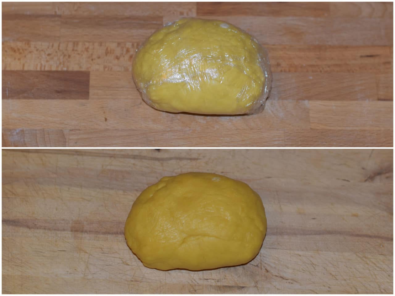Nel frattempo preparate la pasta all'uovo: unite farina e uova in una ciotola e lavorate velocemente fino ad ottenere un panetto omogeneo, avvolgetelo con pellicola per alimenti e lasciate riposare a temperatura ambiente per 1 ora.