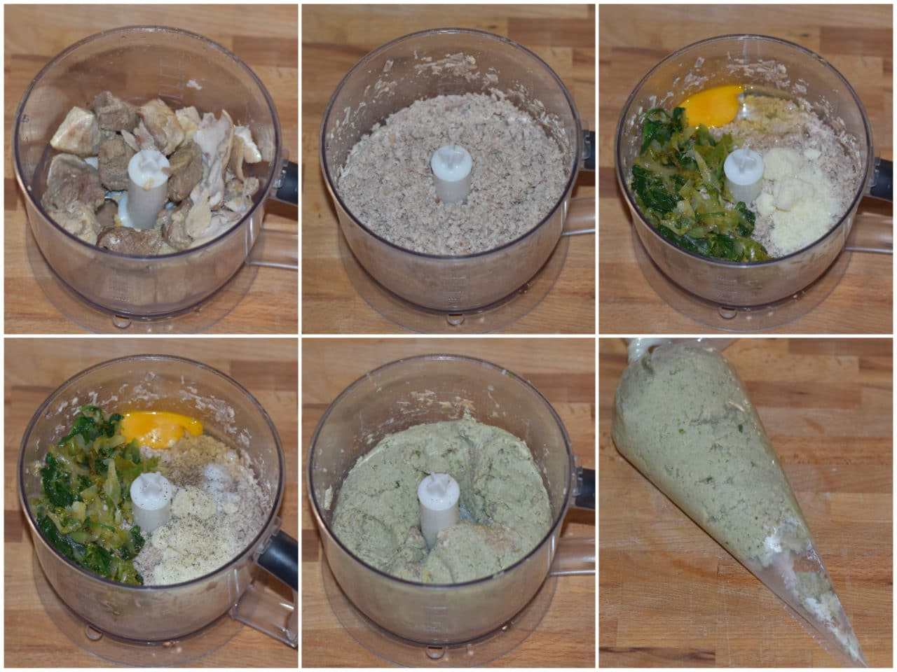 Mettete in un mixer la carne e frullatela, poi unite uovo, parmigiano e verdure stufate, aggiustate di sale e pepe e frullate ancora.