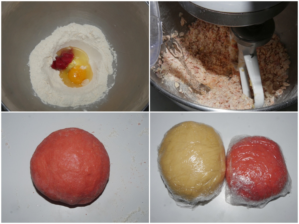 Dopo 1 ora riprendete i panetti, infarinateli leggermente e stendeteli con la macchina tirasfoglia in 2 sfoglie sottili (stendete prima la sfoglia gialla e poi quella rossa, per sicurezza).