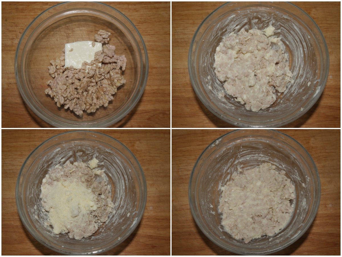 Lasciate almeno intiepidire la carne, quindi unite lo stracchino e il parmigiano e amalgamate.