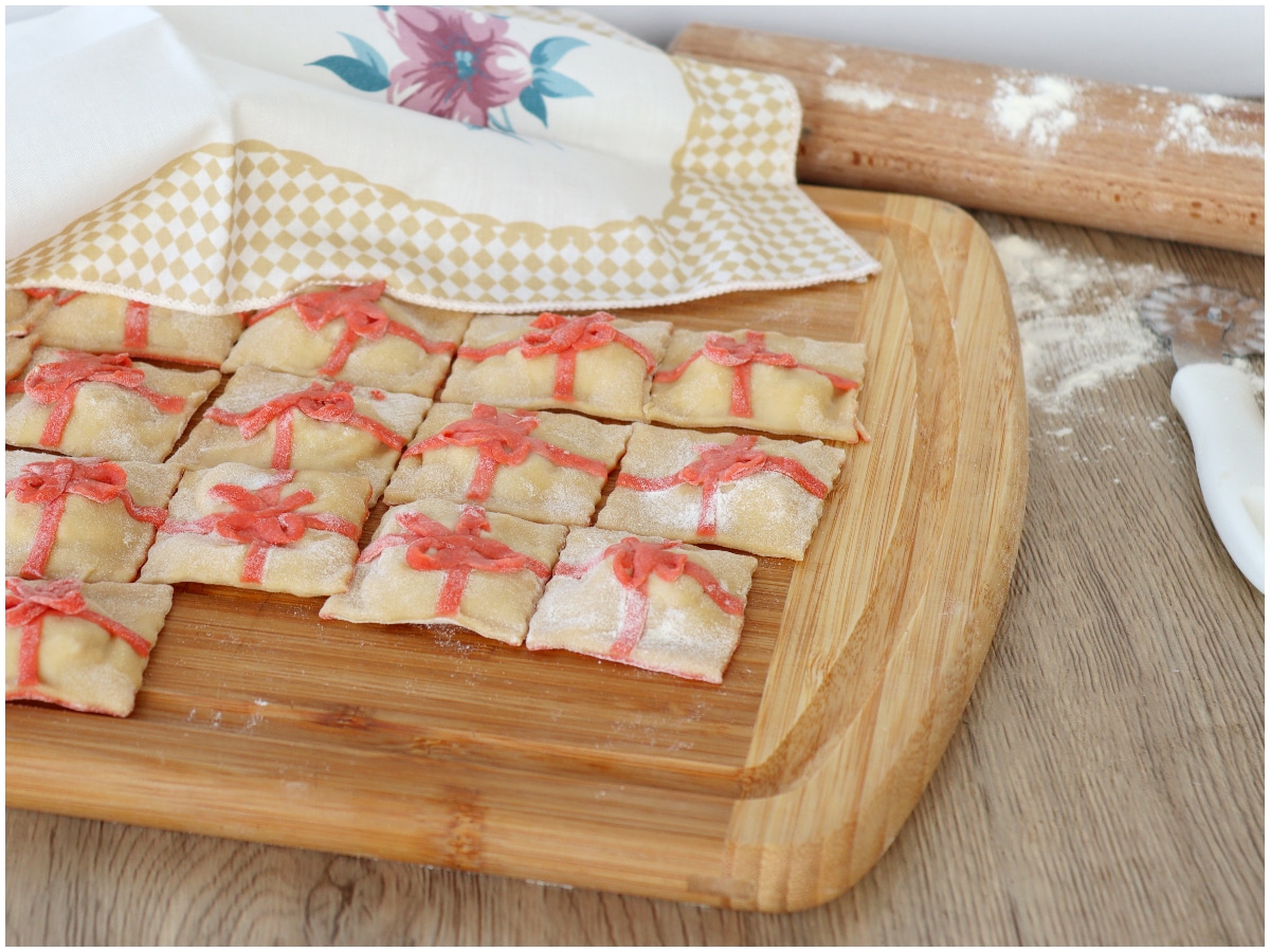 I ravioli pacchetto regalo sono pronti, ora non vi resta che cuocerli e condirli a piacere.