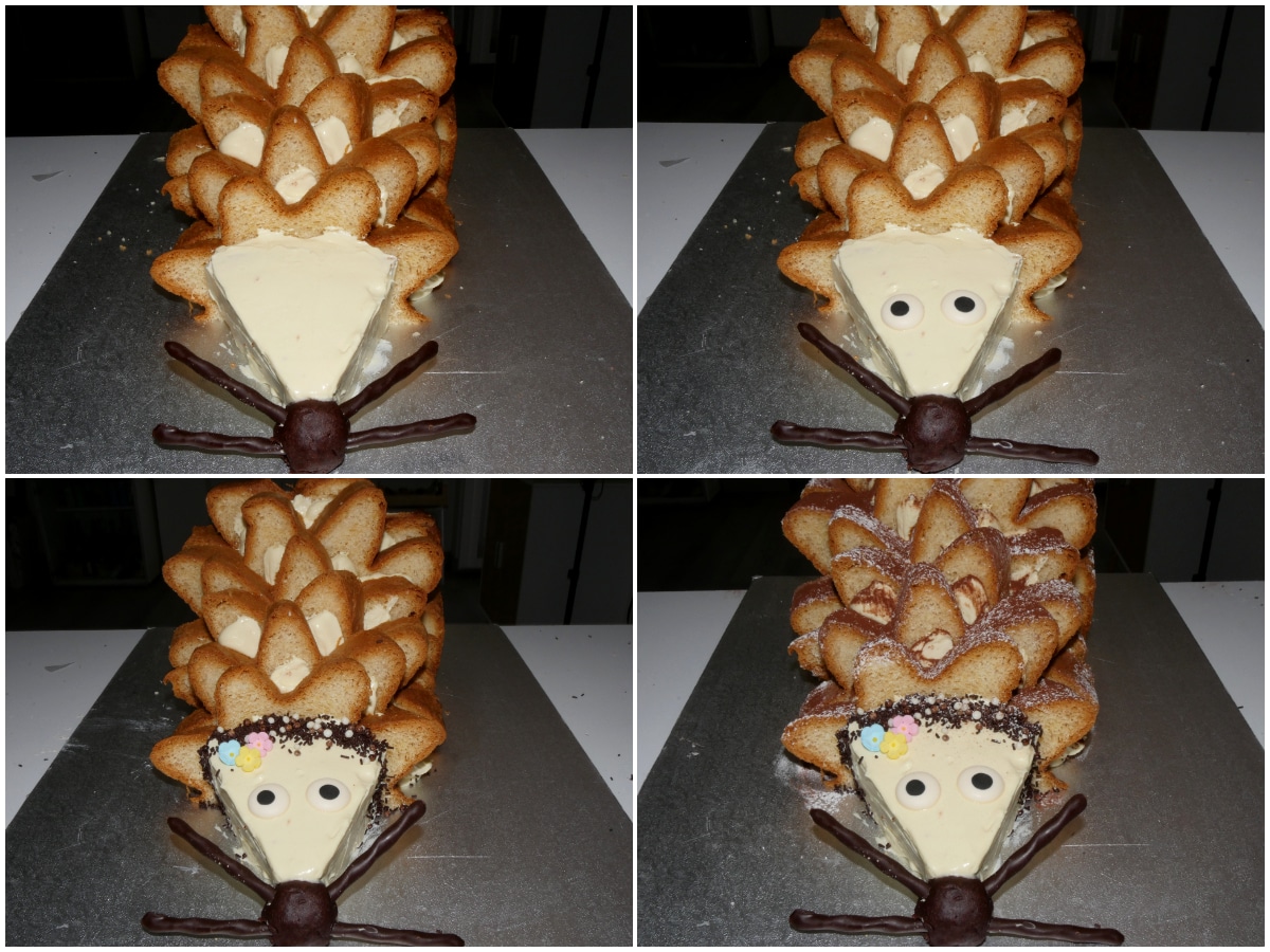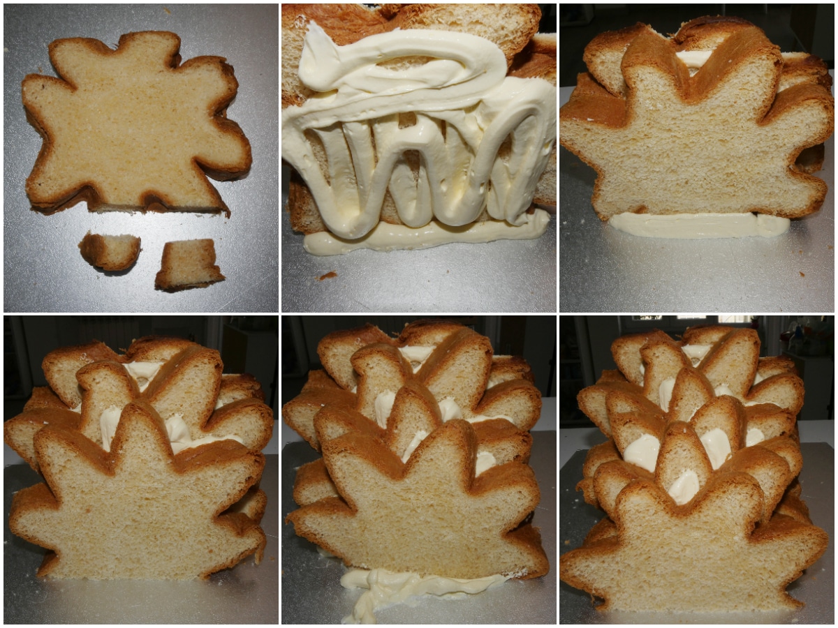 Posizionate dei pezzi triangolari davanti alle fette per creare il muso e rivestitelo con la crema.