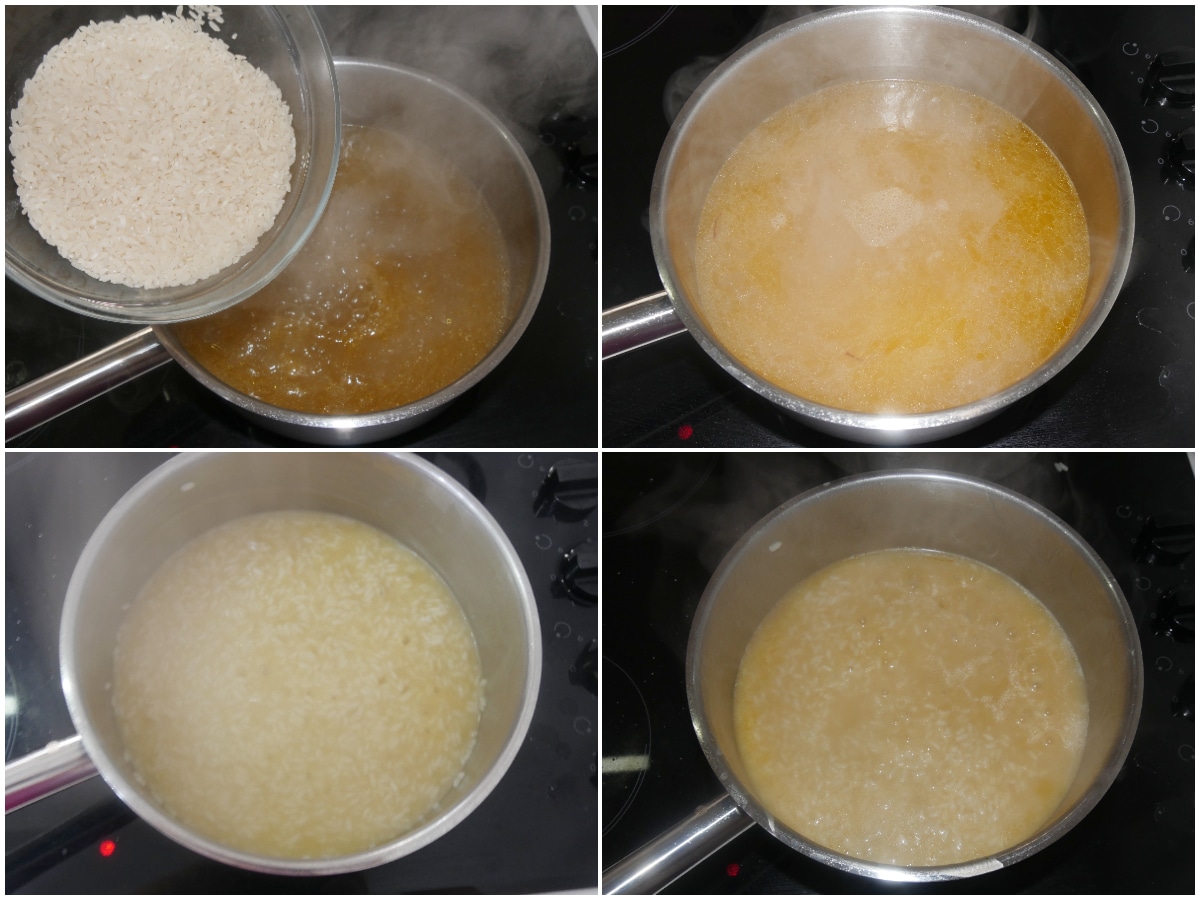 Versate il riso nel brodo, unite lo zafferano e lasciate cuocere a fiamma bassa, aggiungendo un po' di acqua calda solo se serve.