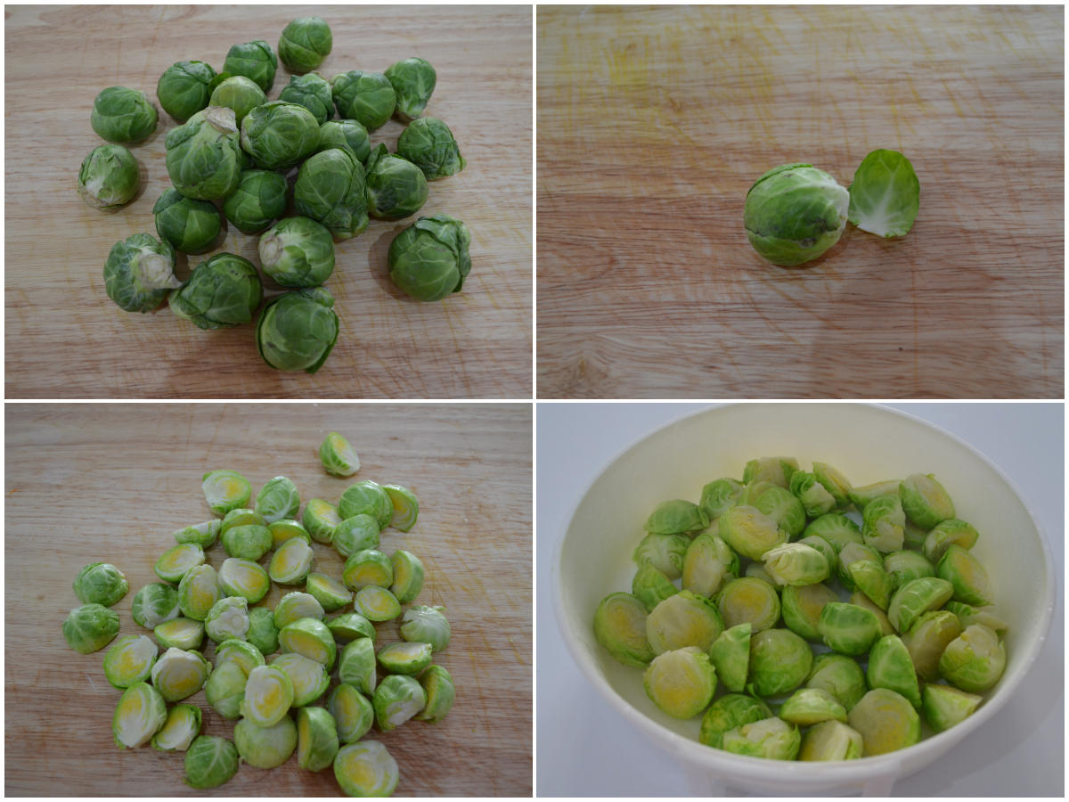 Innanzitutto pulite i cavoletti eliminando il torso alla base e le foglie più esterne e rovinate.