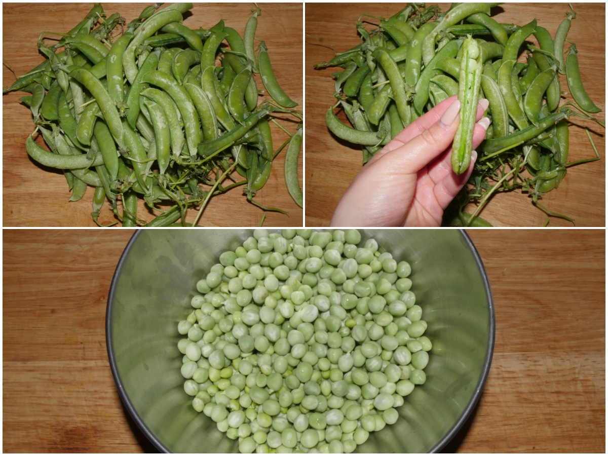 Innanzitutto lavate bene i baccelli sotto acqua corrente, quindi sgranate i piselli.