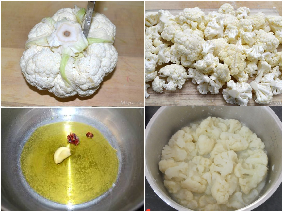 Innanzitutto mondate il cavolfiore, dividetelo in cimette e lavatelo.