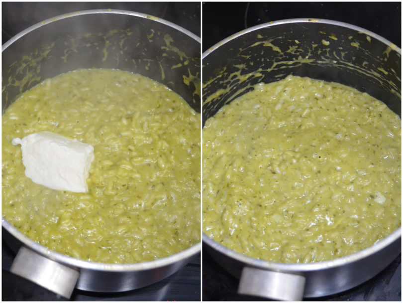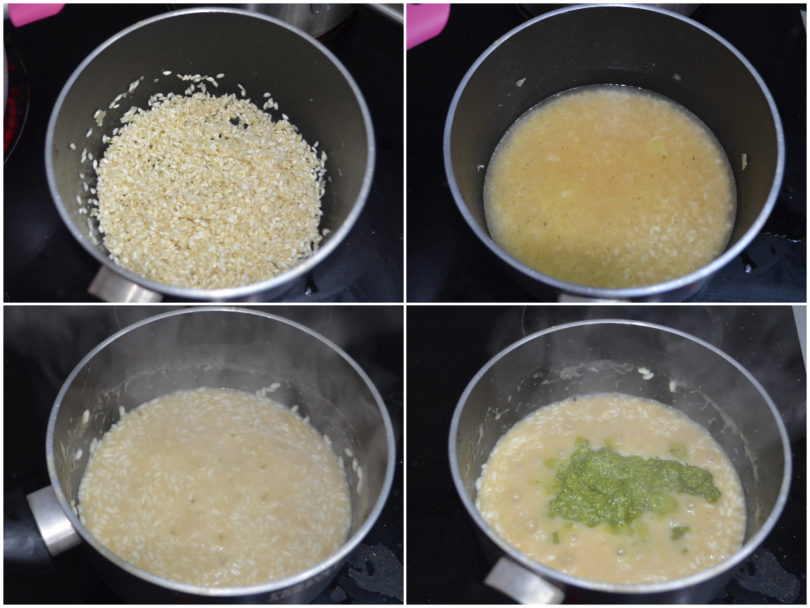 verso metà cottura (i tempi dipenderanno dal riso che avete scelto), aggiungete il pesto.