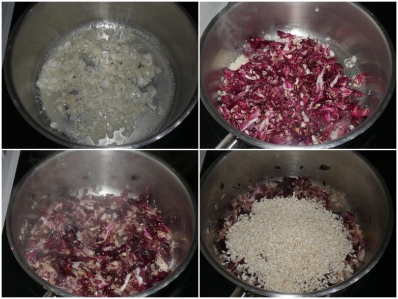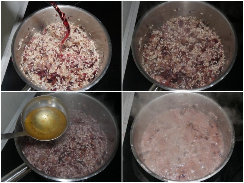 Mescolate e quando il radicchio si sarà ammorbidito, aggiungere il riso