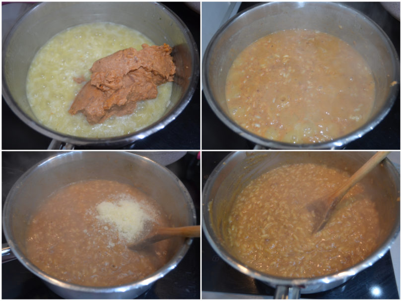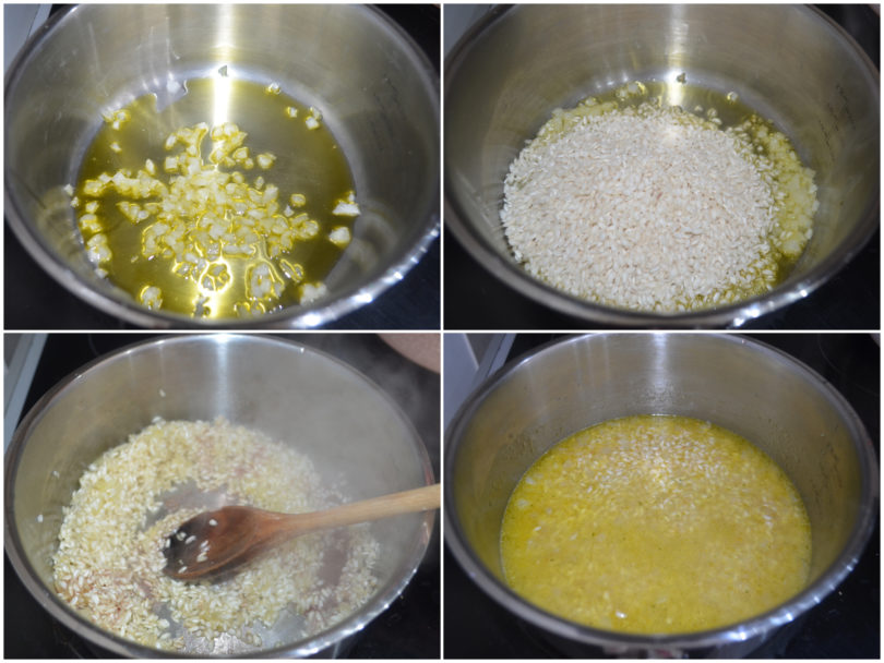 Iniziate poi la cottura aggiungendo poco brodo per volta man mano che viene assorbito e mescolandolo spesso.