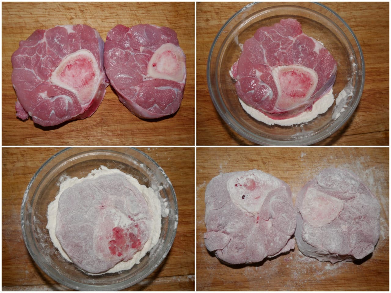 Innanzitutto infarinate bene gli ossibuchi (questo passaggio salta se avete il midollo).