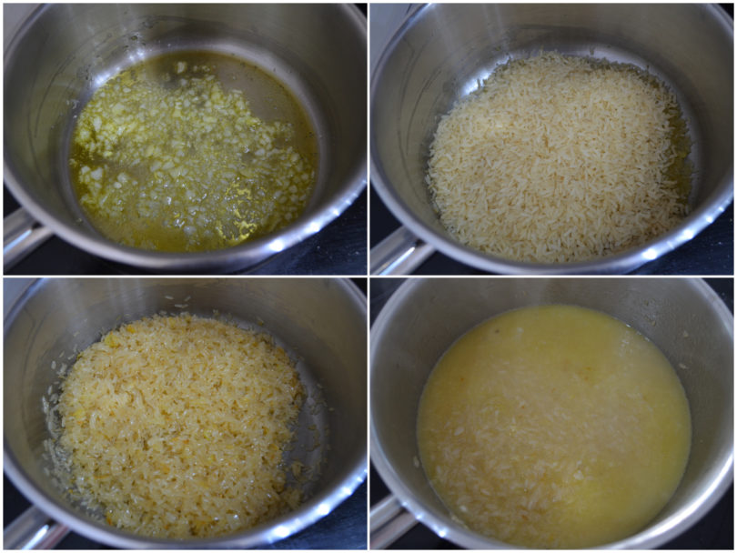 Iniziate ad aggiungere acqua calda salata poco per volta e portare a cottura il riso (ci vorranno circa 15 minuti).