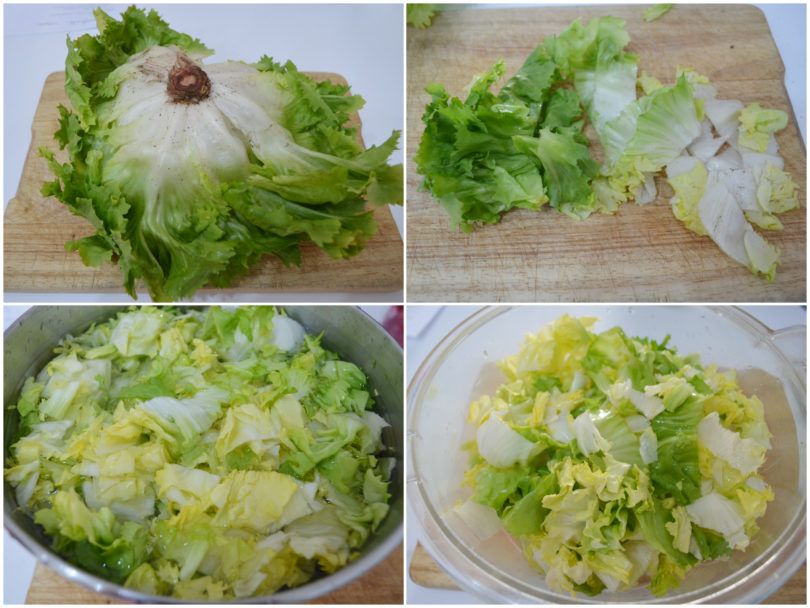 Innanzitutto pulite le scarole eliminando il torso e le parti rovinate e lavando tutto bene sotto acqua corrente, quindi tagliatele a pezzi.