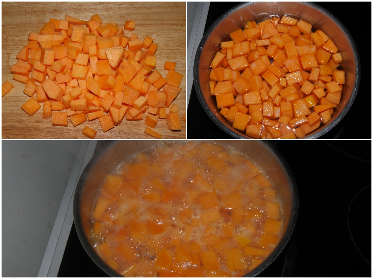 Mondate la zucca, tagliatela a tocchetti, mettetela in una pentola, coprite con acqua abbondante e fate lessare per almeno 40-50 minuti, fino a renderla molto morbida.