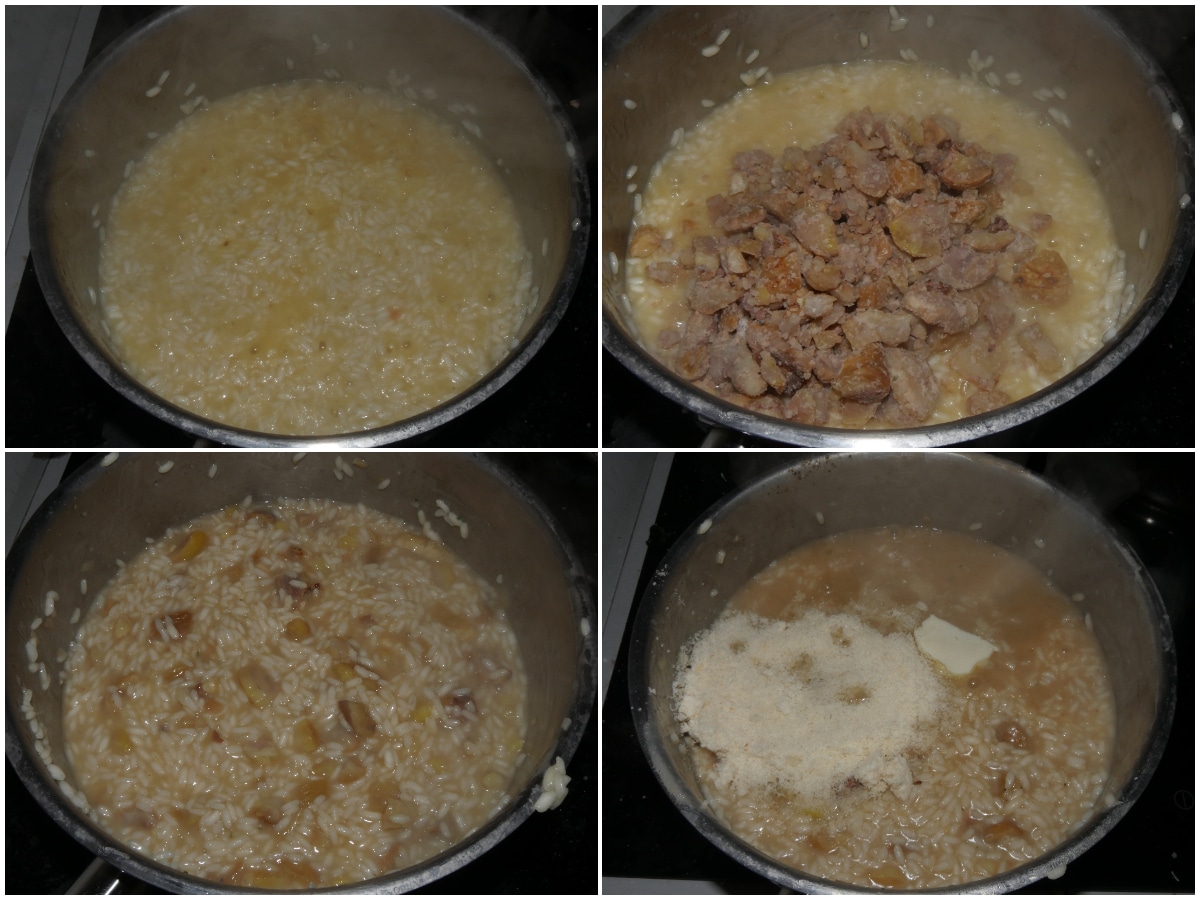 Dopo circa 8-10 minuti aggiungete le castagne e continuate la cottura finché il riso non risulterà cotto al dente, quindi mantecate con burro e grana e aggiustate di sale e pepe.