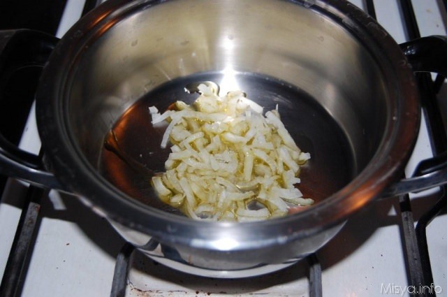 Far imbiondire lo scalogno tritato in una casseruola con l'olio