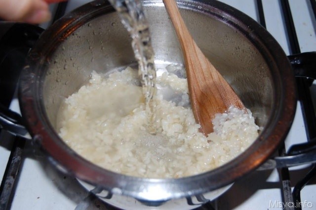 Aggiungete il brodo vegetale fino a ricoprire il riso e aggiungetene man mano che si asciuga.
