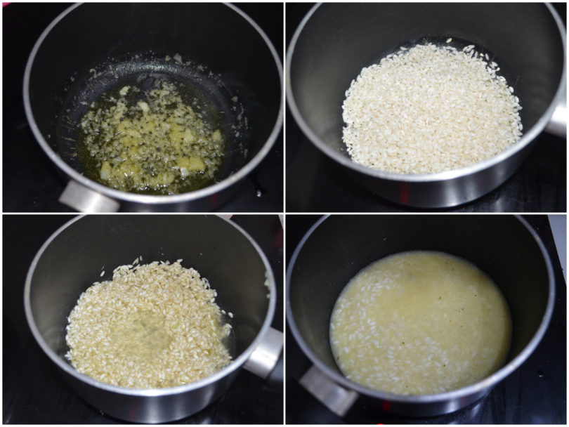 Iniziate ad aggiungere il brodo caldo, poco per volta, aggiungendone altro man mano che il mestolo precedente viene assorbito.