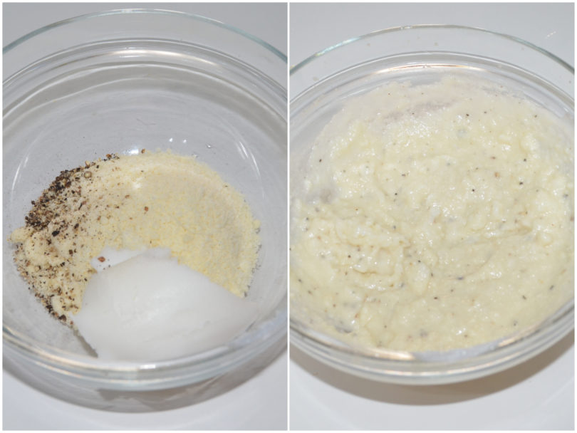 Grattugiate il pecorino, macinate il pepe (lasciandone qualche grano da parte) e uniteli allo strutto in una ciotola.