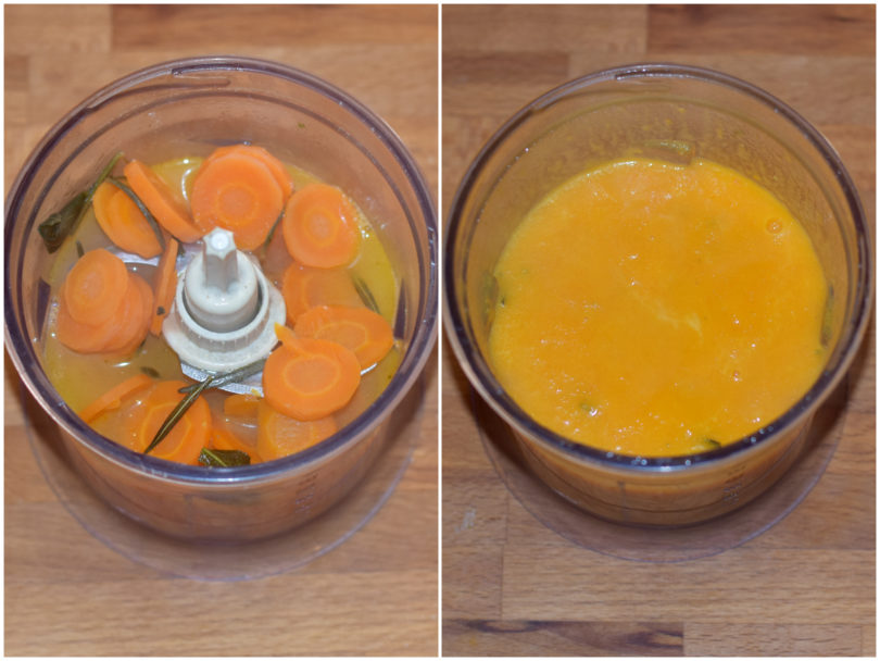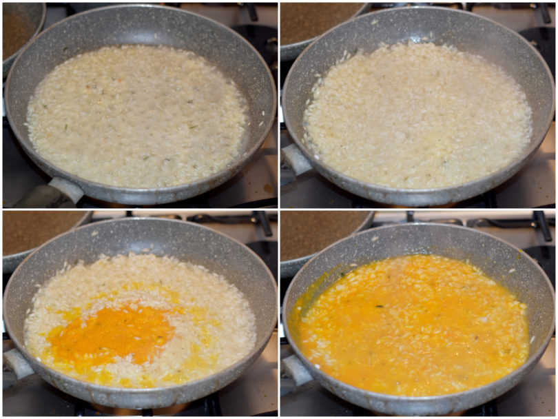 Quando il riso sarà circa a metà cottura unite metà della crema di carote.