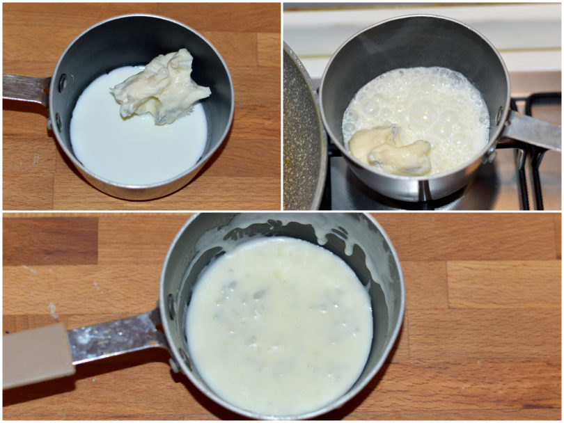 Un minuto prima di spegnere il gas unite la crema restante, poi mescolate, spegnete e mantecate con burro e parmigiano.