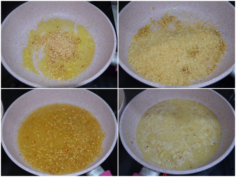 Iniziate quindi la cottura con il brodo, aggiungendolo poco per volta e mescolando molto spesso.