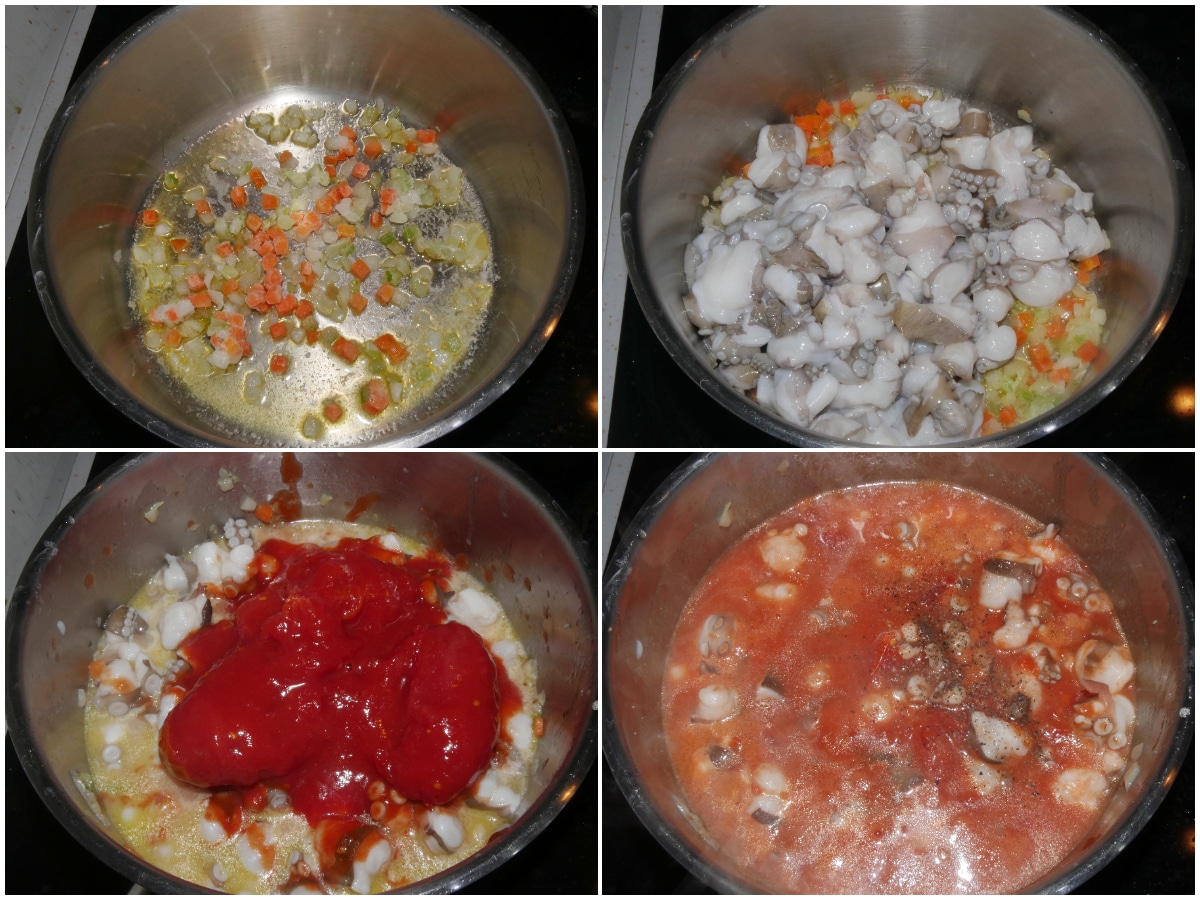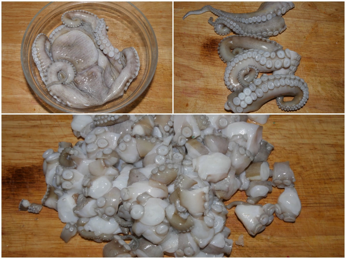 Innanzitutto pulite il polpo (qui la guida per farlo al meglio) e tagliatelo a tocchetti.