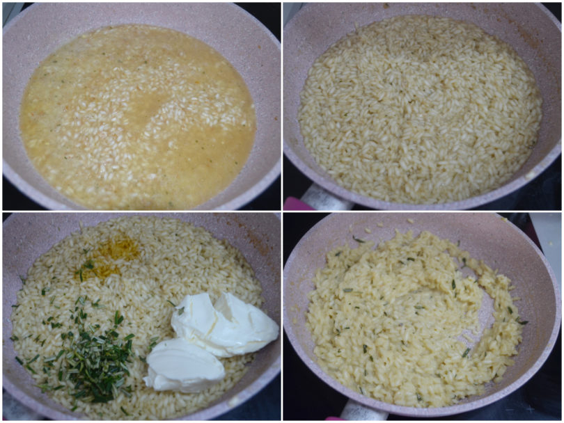 A fine cottura mantecate con il resto del burro e un po' di parmigiano, quindi servite il risotto al miele e rosmarino guarnendo con del rosmarino fresco.