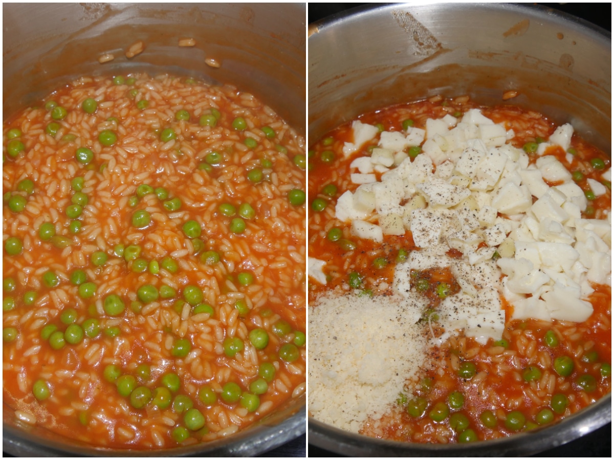 A fine cottura, aggiustate di sale e pepe e mantecate velocemente con mozzarella e parmigiano.